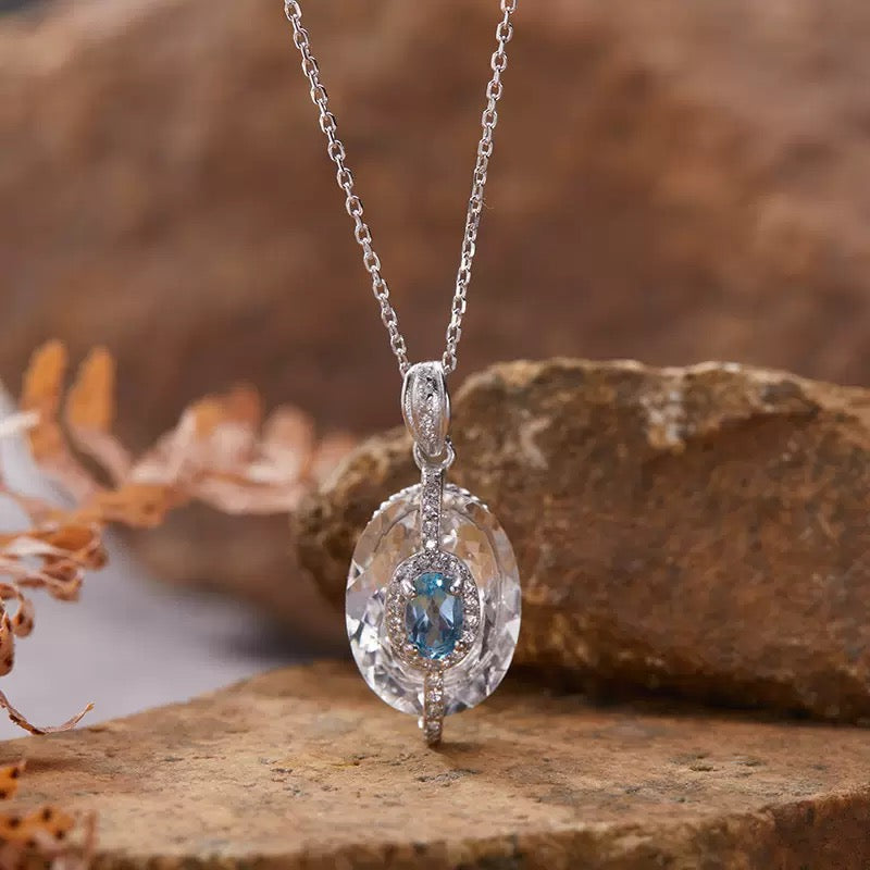 S925 Sterling Silver Necklace Inlaid with Natural Tanzanite, White Crystal, and Colored Gemstones