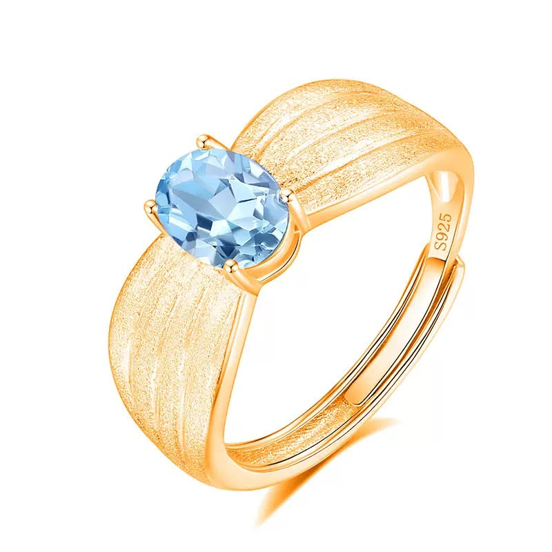 Women’s S925 Sterling Silver Ring with Natural Crystal Inlay, French Brushed Finish